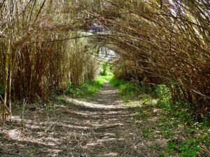 Oltre al fosso, il parco è caratterizzato da due lunghi viali alberati, che rappresentano veri e propri corridoi ombrosi all’interno della vegetazione. Il primo viale, attraversato da un doppio filare di pini domestici alternati con oleandri e melograni, collega l’area settentrionale a quella meridionale del parco e scavalca il Fosso di San Basilio mediante un antico ponticello in muratura, testimonianza della storia agricola del luogo. Il secondo viale segue invece l’asse longitudinale dell’area protetta ed è arricchito dalla presenza di pini, lecci e platani allevati “a ceppaia”, una tecnica di gestione che favorisce la produzione di nuovi getti dalla base dei tronchi. Durante le giornate estive, questi viali risuonano del frinire delle cicale, i cui cori rivelano la loro presenza molto prima di riuscire a individuarle sui tronchi.