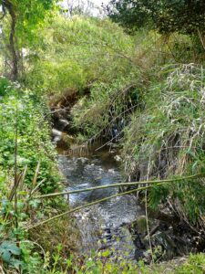 Dal parcheggio di Viale Filippo Tommaso Marinetti un piccolo sentiero poco evidente conduce al Fosso del Ciuccio, che si attraversa grazie a un piccolo ponticello. Il cammino prosegue costeggiando il giardino di due scuole con ingresso su Via Gadda, in un percorso obbligato che si snoda tra piccoli orti, alberi di fico e macchie di rovi, dove risuona il verso acuto dell’usignolo di fiume. Sulla destra, alcuni prati ospitano pioppi e aceri, mentre a sinistra, verso Via Gadda, si ergono salici piangenti che circondano fitte colonie di malva. Proseguendo, si scorgono le acque limpide del piccolo fosso, alimentate da una sorgente perenne, che ne mantiene il corso limpido durante tutto l’anno. Lungo le sponde, ciuffi di equiseto spuntano inaspettati, creando un’atmosfera quasi esotica. Ai piedi dei salici e delle canne domestiche, e accanto a rari ontani, timide rane verdi si tuffano al minimo movimento, mentre libellule dai riflessi metallici danzano appena sopra l’acqua. Un ultimo ponticello permette di scavalcare nuovamente il corso d’acqua, prima di raggiungere alcune rampe di scale provenienti dalla sovrastante Viale Ignazio Silone. Il ritorno si può effettuare lungo lo stesso percorso dell’andata. Camminando con calma, concedendosi qualche sosta per osservare piante e animali, l’intero percorso richiede circa un’ora e mezza.